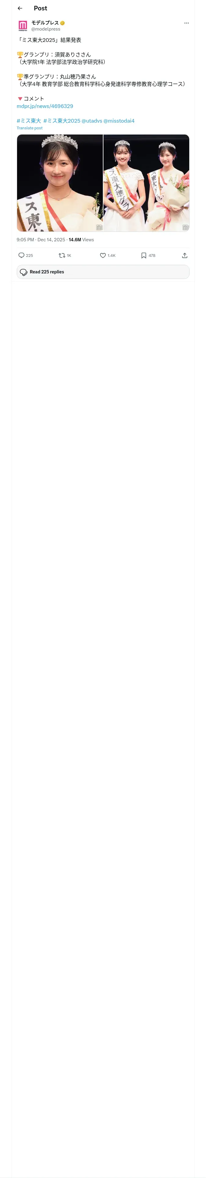 取得元URL: https://x.com:443/modelpress/status/2000175351629304019