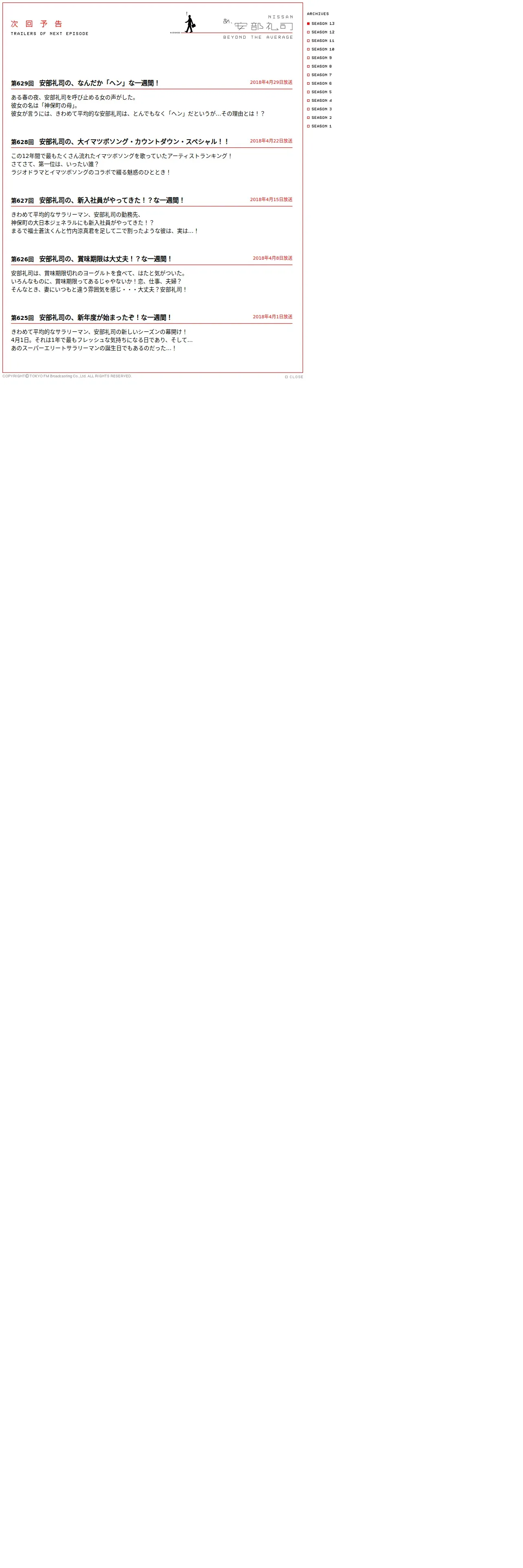 https://www.tfm.co.jp:443/abe/outlines/