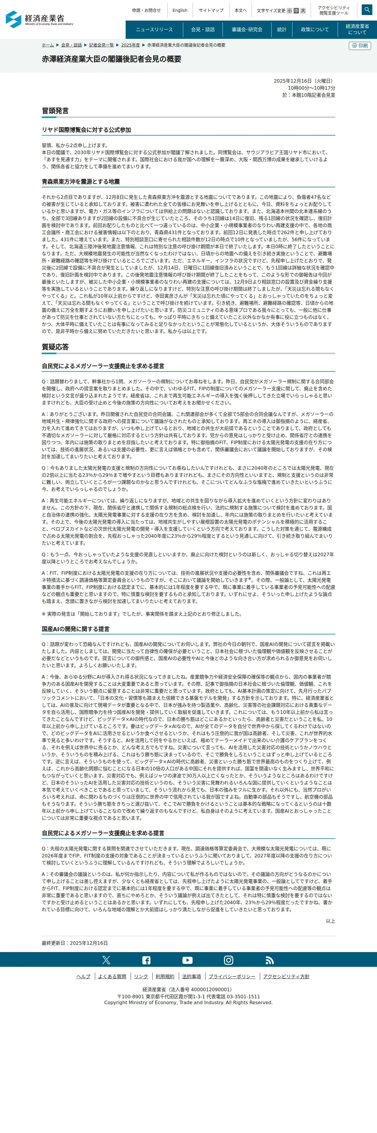https://www.meti.go.jp:443/speeches/kaiken/2025/20251216001.html
