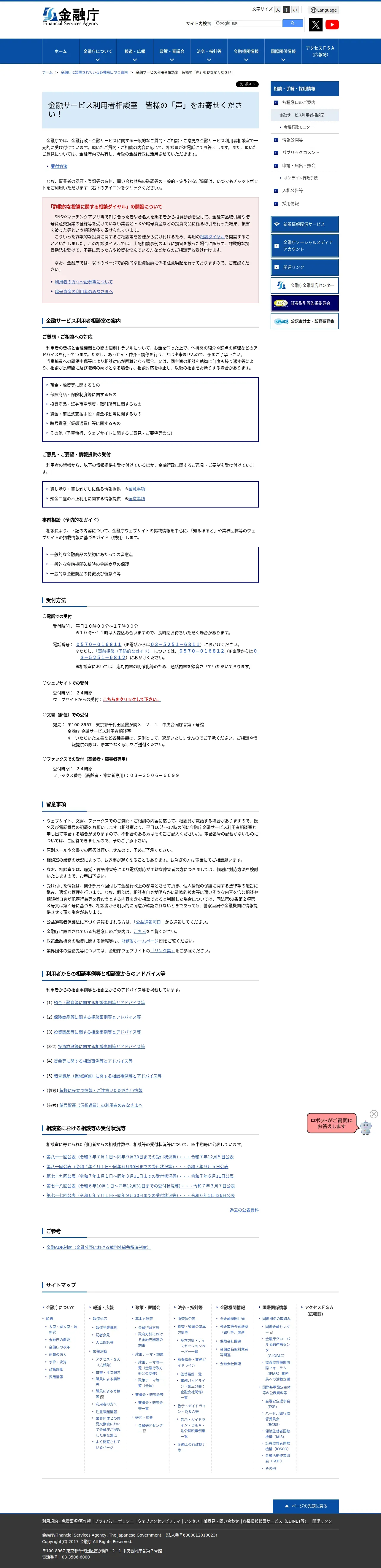 https://www.fsa.go.jp:443/receipt/soudansitu/index.html