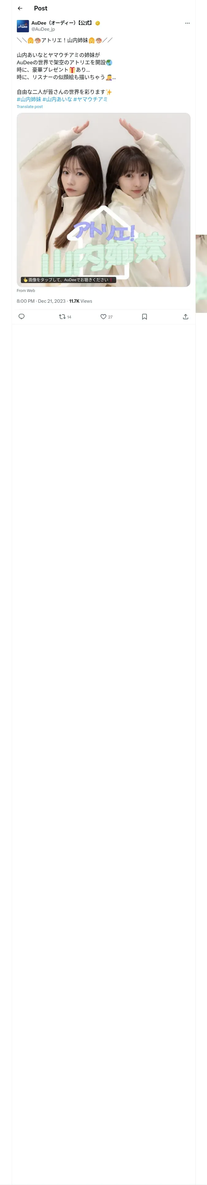 https://x.com:443/AuDee_jp/status/1737790013851541699
