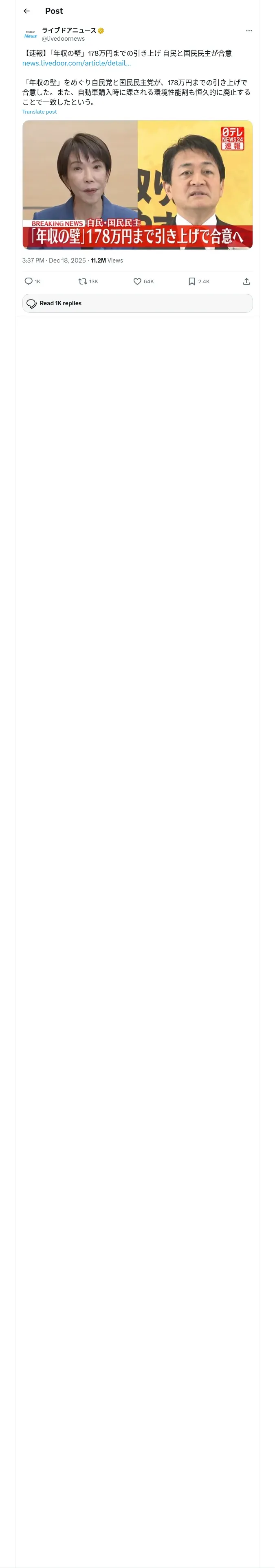 https://x.com:443/livedoornews/status/2001542400720953685