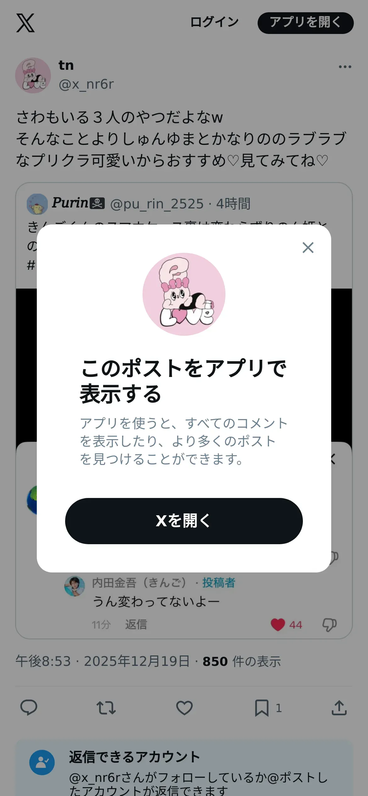 取得元URL: https://x.com:443/x_nr6r/status/2001984290838695989?s=46