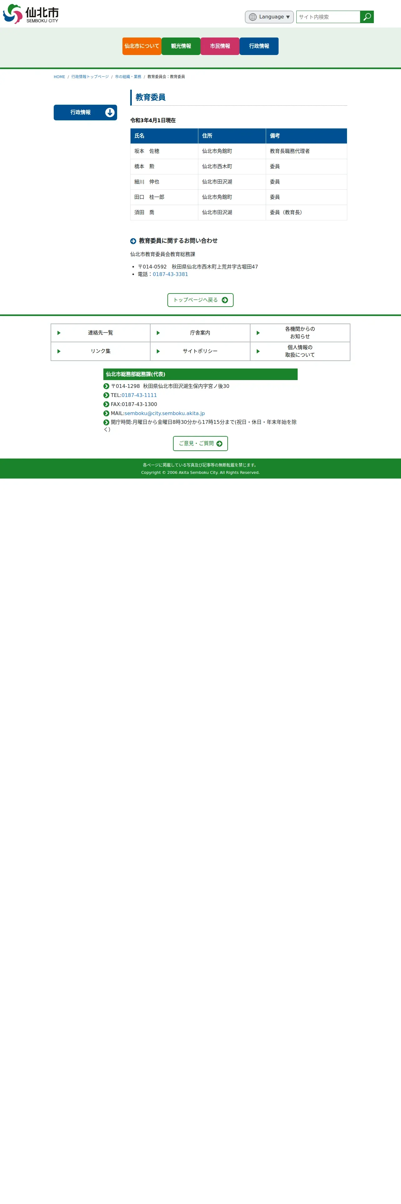 https://www.city.semboku.akita.jp:443/government/yakuba/kyoikuiin.html