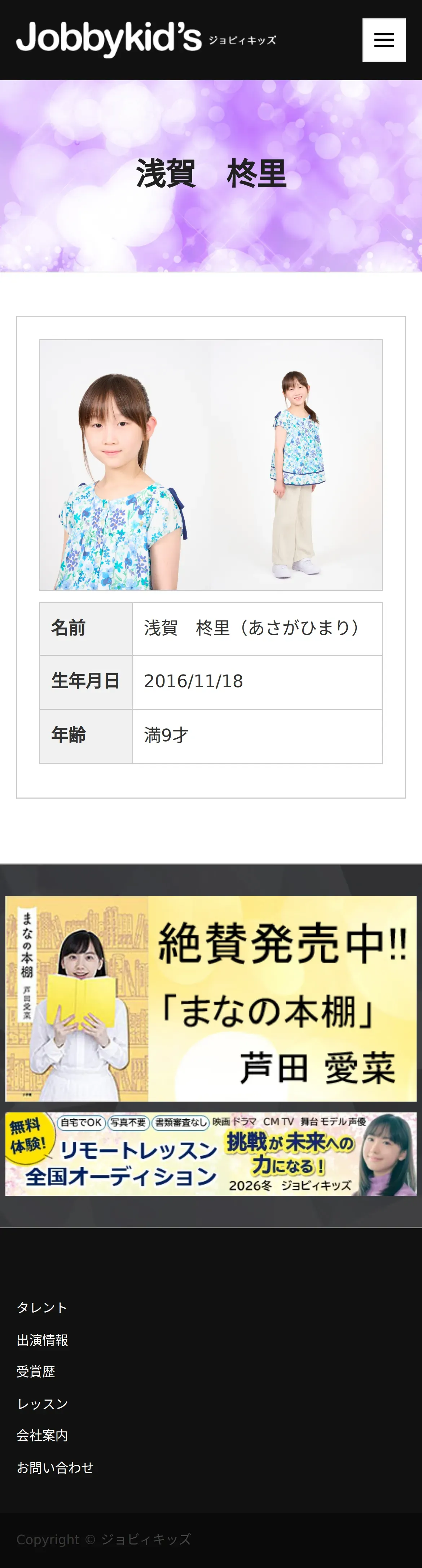 取得元URL: https://www.jobbykids.jp:443/talent/%e6%b5%85%e8%b3%80%e6%9f%8a%e9%87%8c/