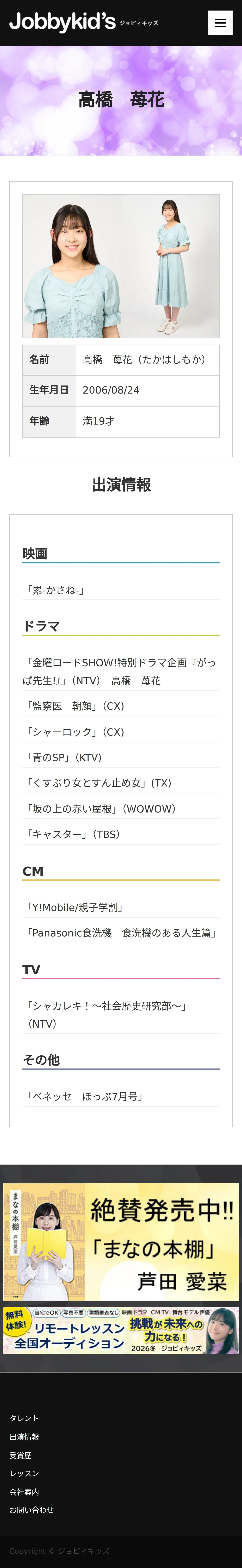 https://www.jobbykids.jp:443/talent/%e9%ab%98%e6%a9%8b%e8%8b%ba%e8%8a%b1/