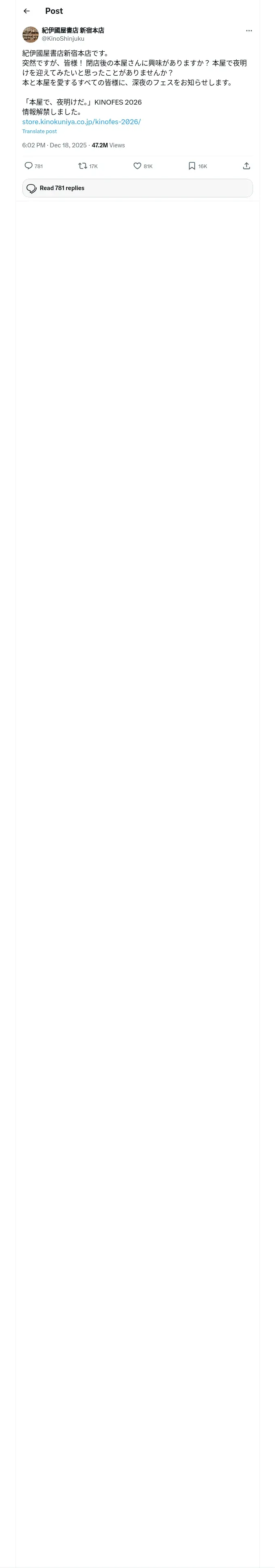 取得元URL: https://x.com:443/KinoShinjuku/status/2001578929208111457