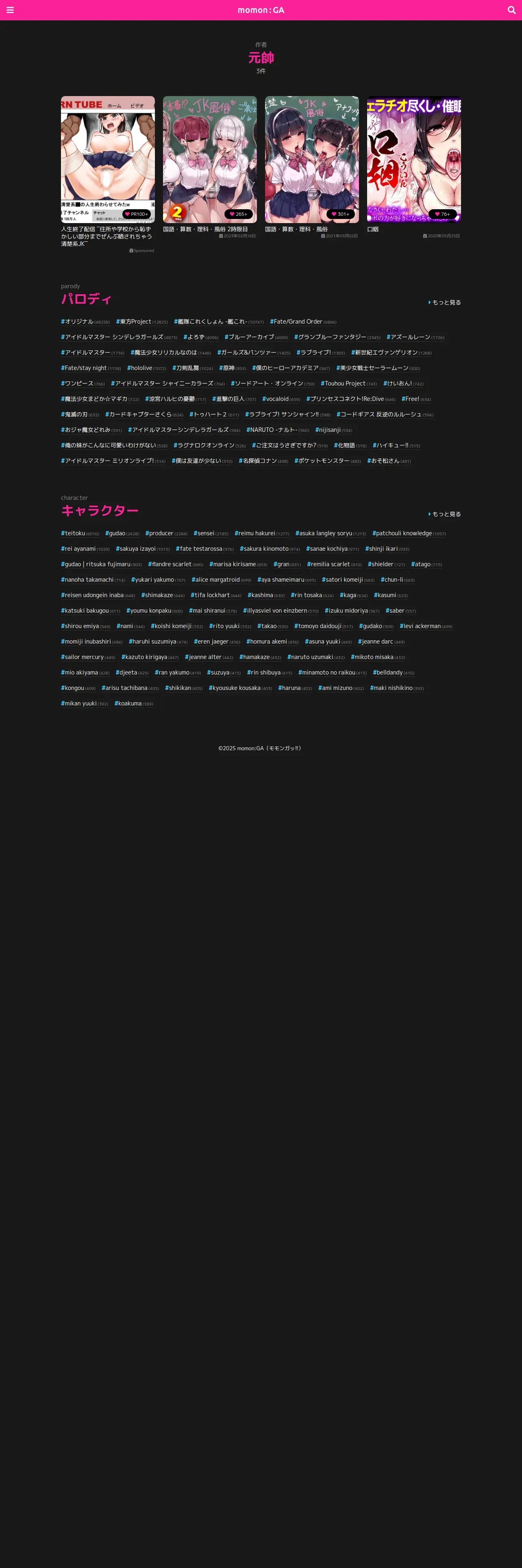 取得元URL: https://momon-ga.com:443/cartoonist/%E5%85%83%E5%B8%A5/