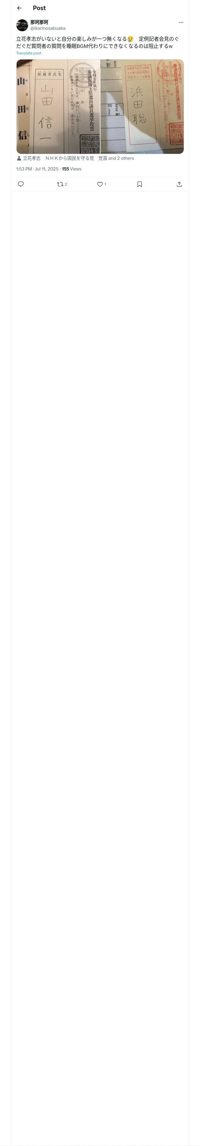 https://x.com:443/ikarinosabuaka/status/1943533965253415170