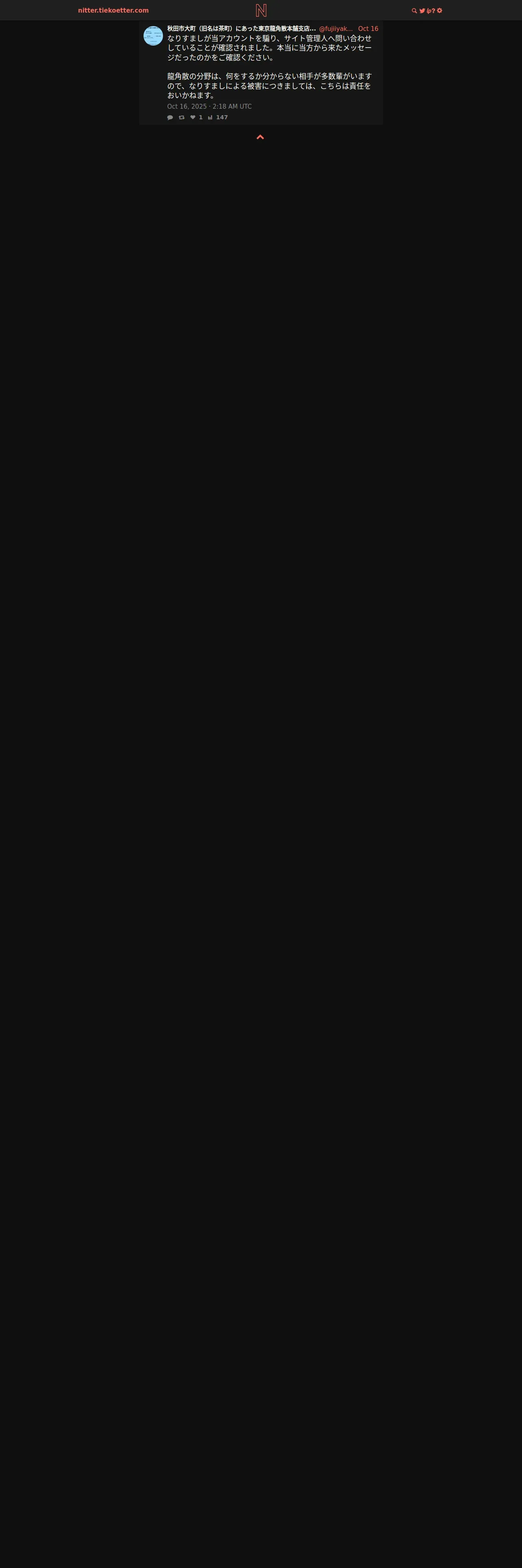https://nitter.tiekoetter.com:443/fujiiyakuho/status/1978646727260328176
