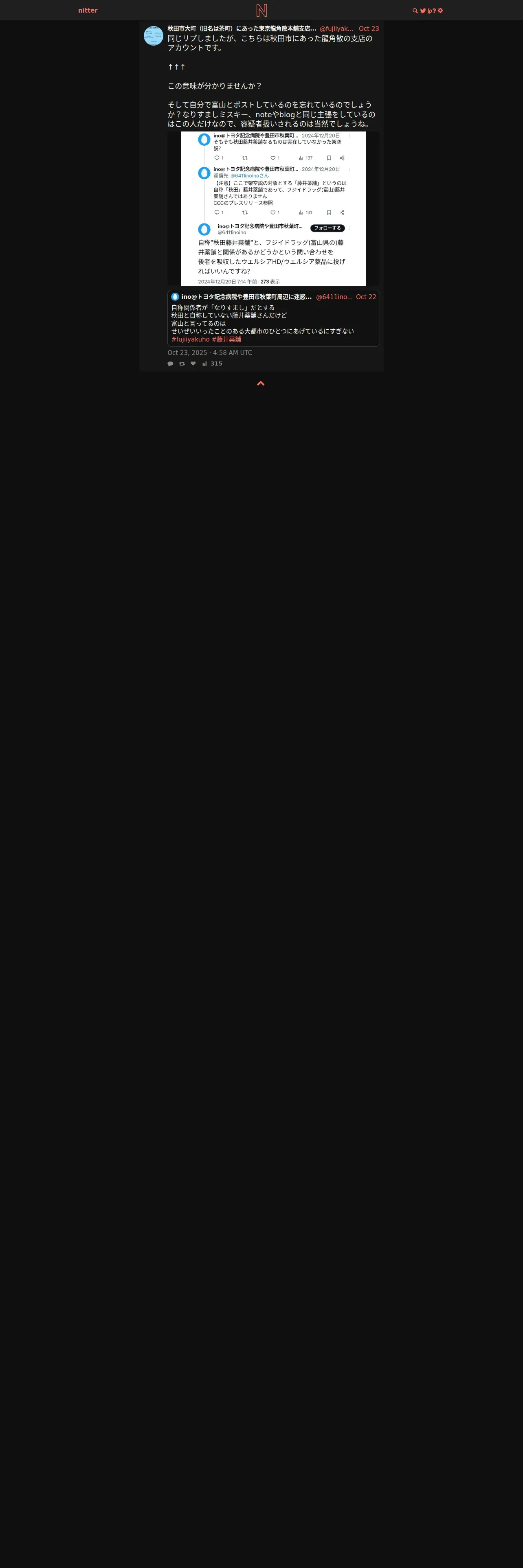 https://nitter.net:443/fujiiyakuho/status/1981223635554881540