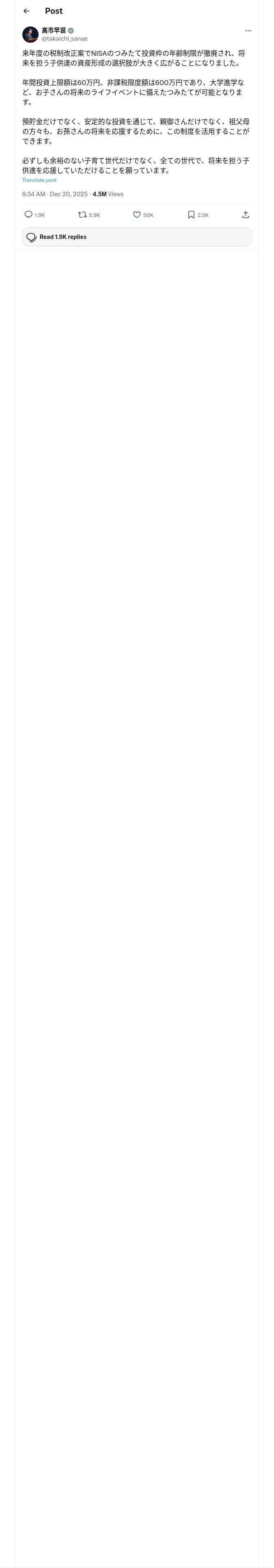 https://x.com:443/takaichi_sanae/status/2002130512622854327