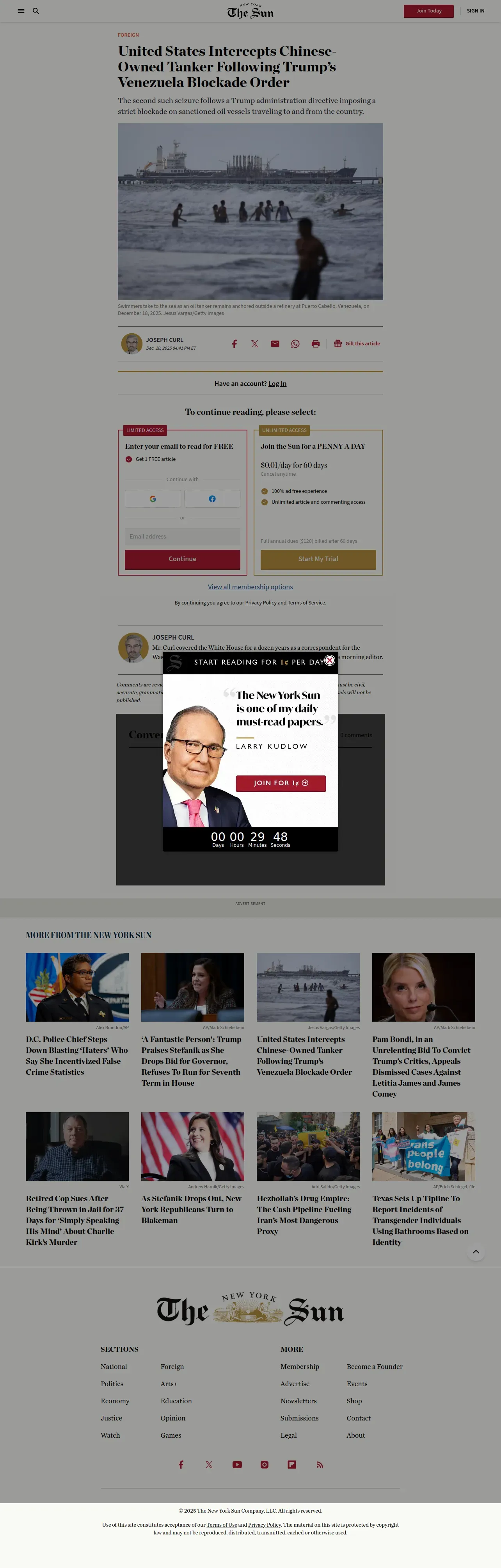 https://www.nysun.com:443/article/united-states-intercepts-chinese-owned-tanker-following-trumps-venezuela-blockade-order