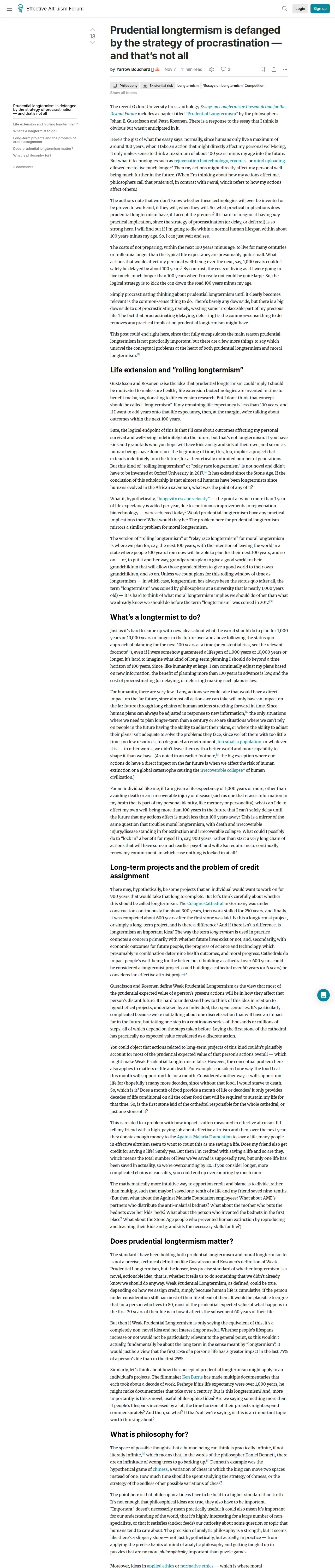 https://forum.effectivealtruism.org:443/posts/KrA6Pe3rwiuyrmwfq/prudential-longtermism-is-defanged-by-the-strategy-of