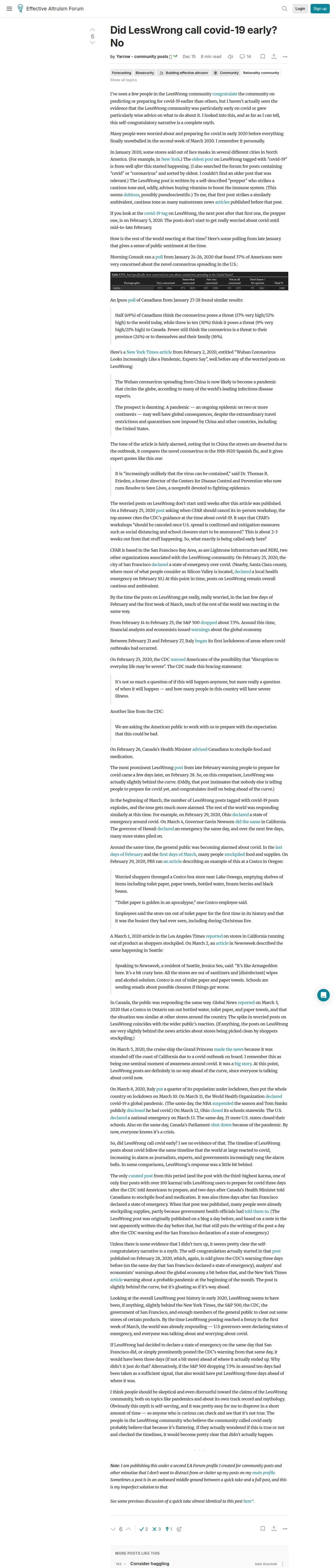 https://forum.effectivealtruism.org:443/posts/rLD34N9BWiHWpGeqH/did-lesswrong-call-covid-19-early-no