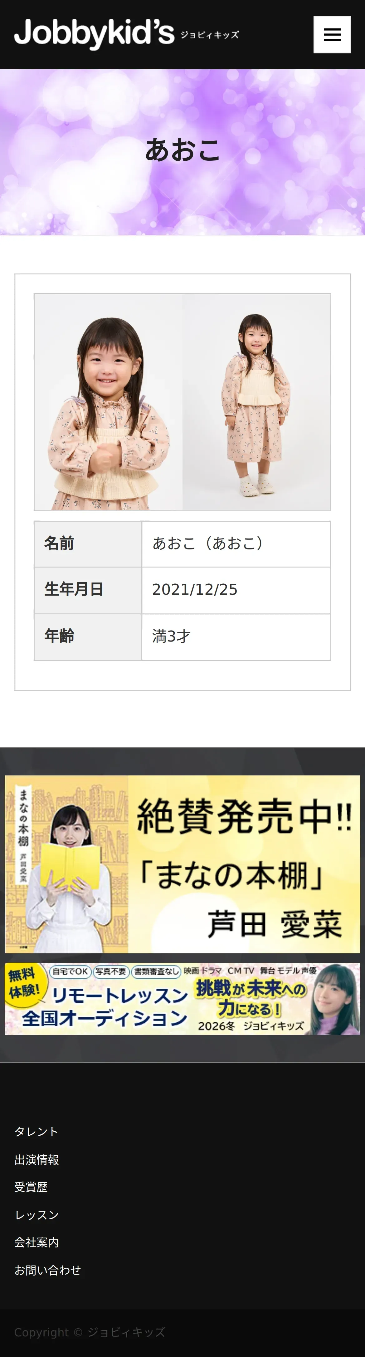 https://www.jobbykids.jp:443/talent/%e3%81%82%e3%81%8a%e3%81%93/
