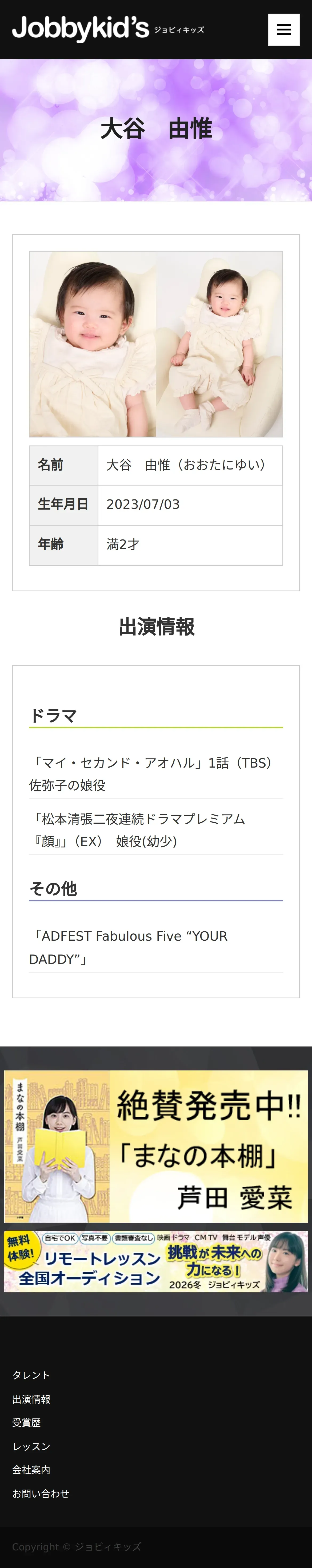 https://www.jobbykids.jp:443/talent/%e5%a4%a7%e8%b0%b7%e7%94%b1%e6%83%9f/