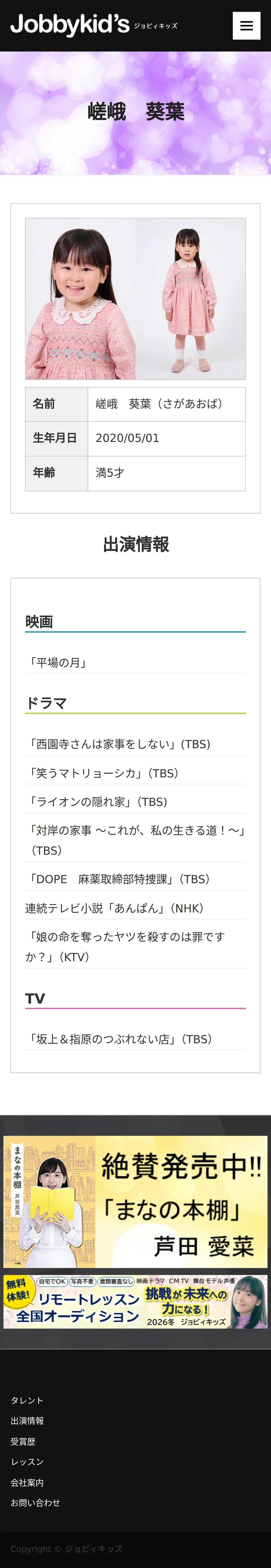 https://www.jobbykids.jp:443/talent/%E5%B5%AF%E5%B3%A8%E8%91%B5%E8%91%89/