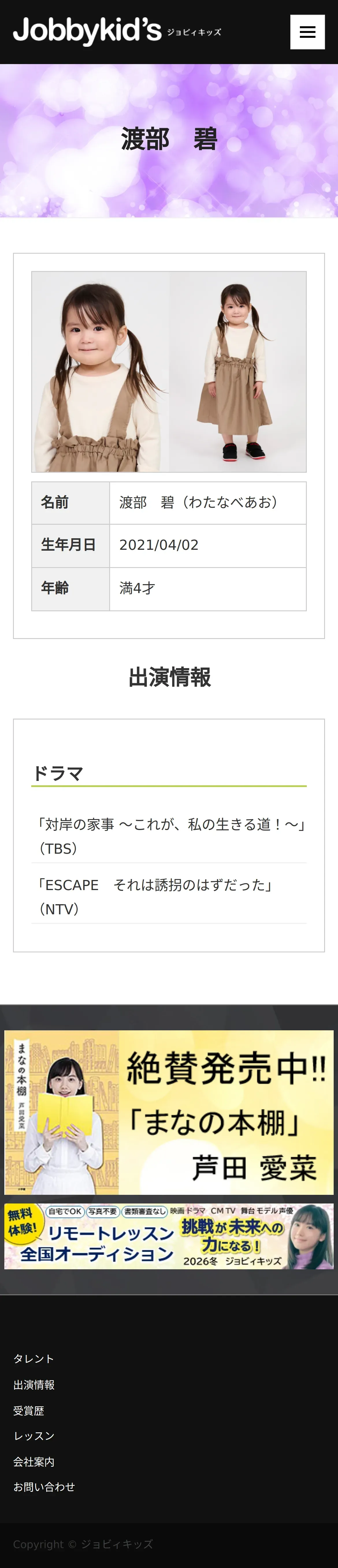 https://www.jobbykids.jp:443/talent/%e6%b8%a1%e9%83%a8%e7%a2%a7/