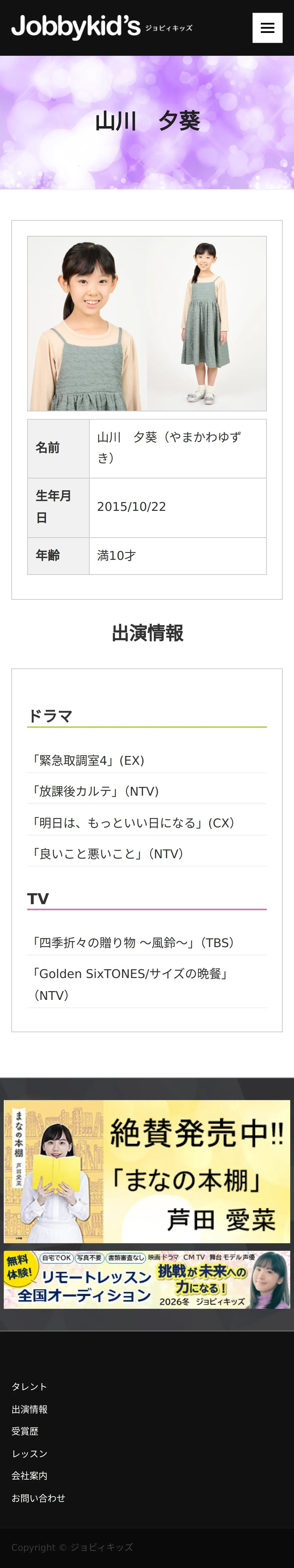 https://www.jobbykids.jp:443/talent/%e5%b1%b1%e5%b7%9d%e5%a4%95%e8%91%b5/