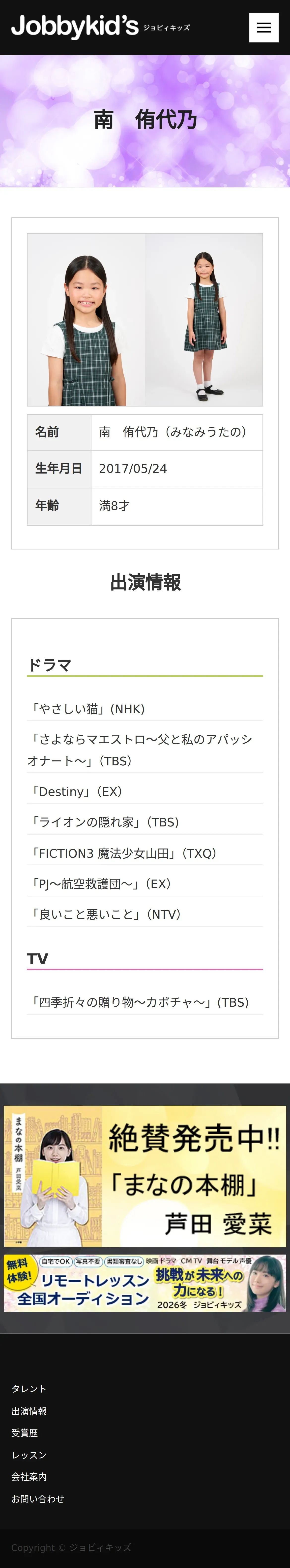 https://www.jobbykids.jp:443/talent/%e5%8d%97%e4%be%91%e4%bb%a3%e4%b9%83/