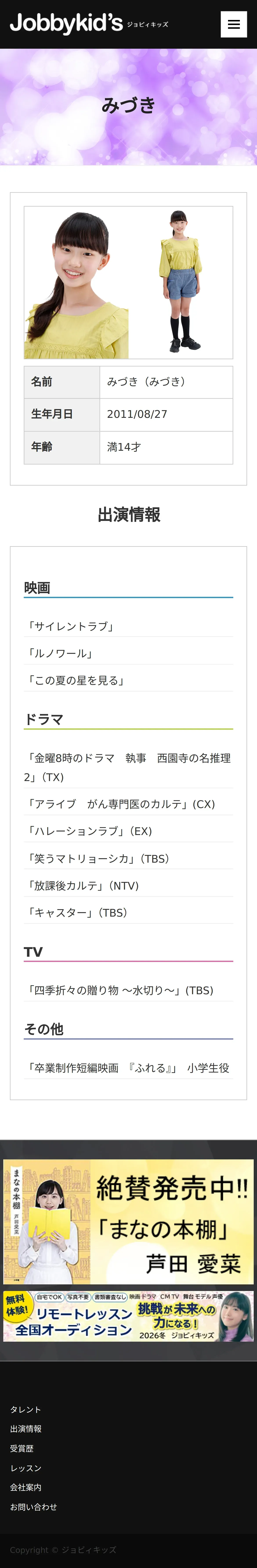 https://www.jobbykids.jp:443/talent/%e3%81%bf%e3%81%a5%e3%81%8d/