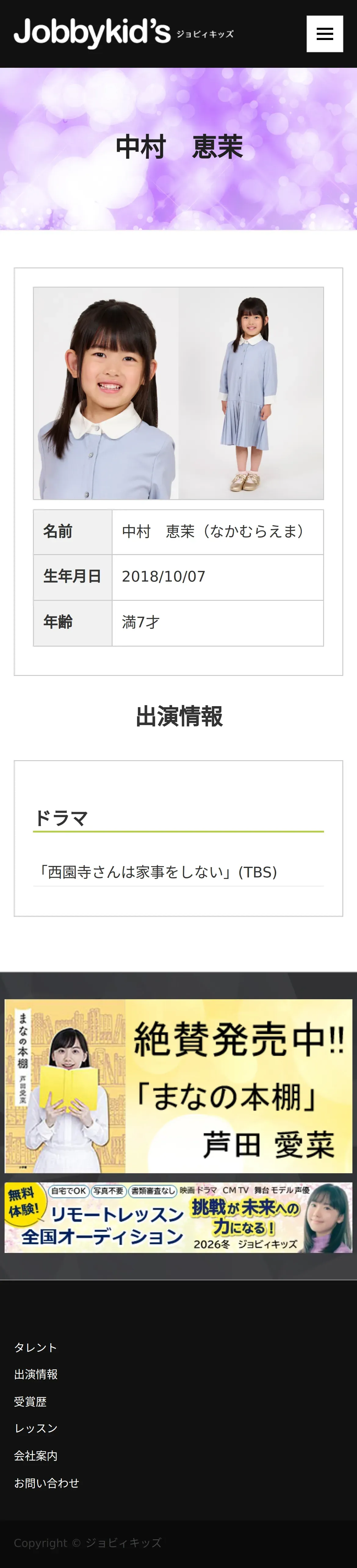 https://www.jobbykids.jp:443/talent/%e4%b8%ad%e6%9d%91%e6%81%b5%e8%8c%89/
