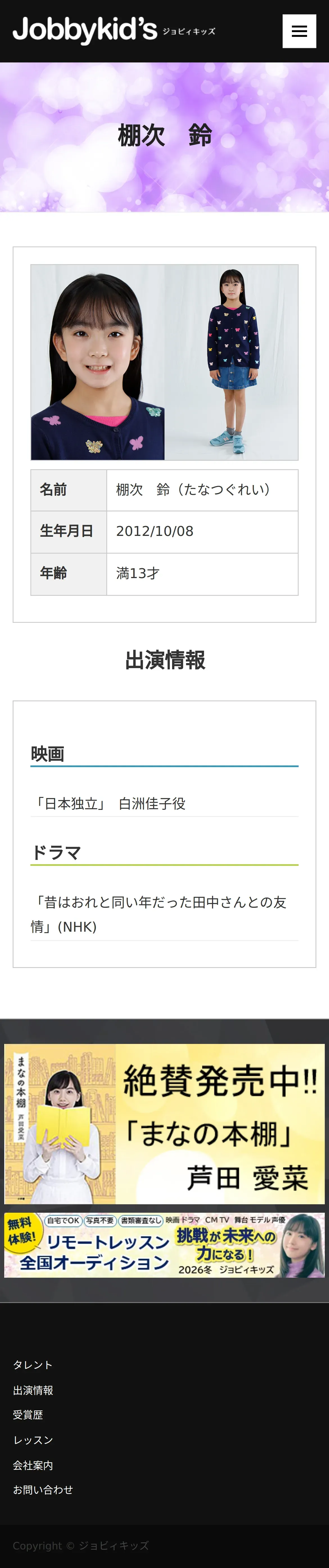 https://www.jobbykids.jp:443/talent/%e6%a3%9a%e6%ac%a1%e9%88%b4/