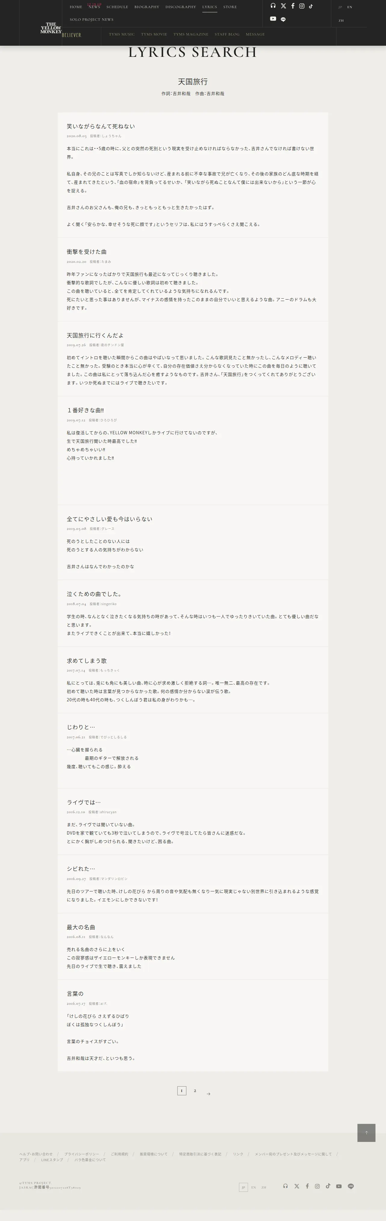 https://theyellowmonkeysuper.jp:443/lyrics/comment_list/67/