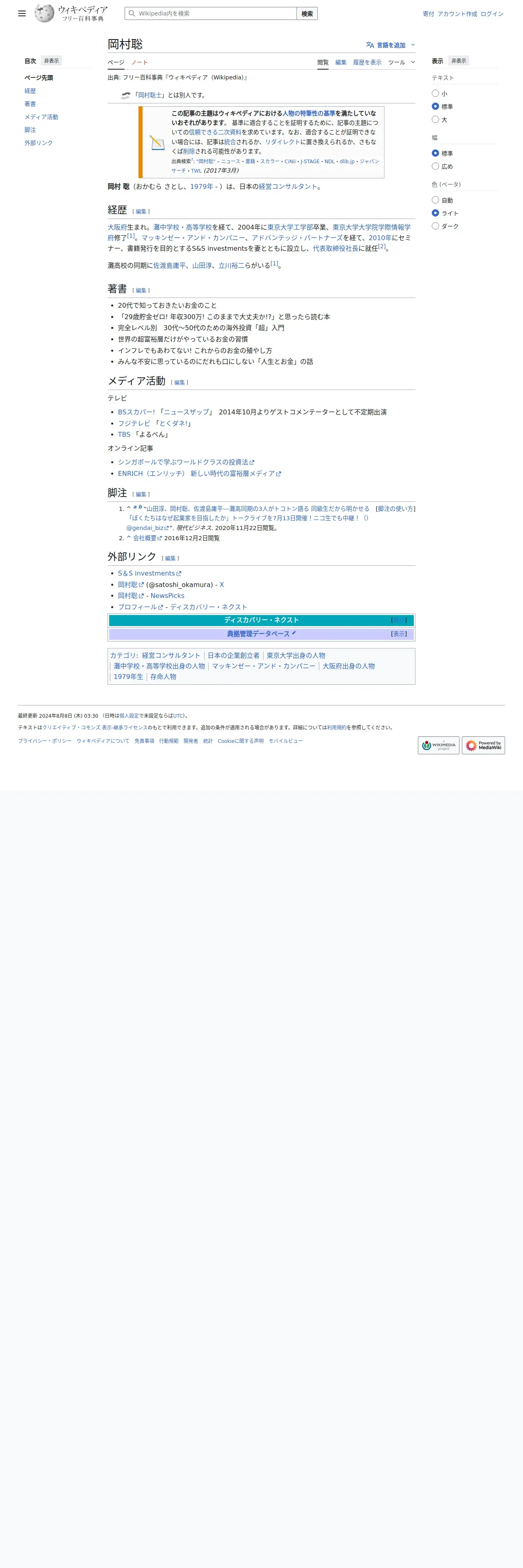 https://ja.wikipedia.org:443/wiki/%E5%B2%A1%E6%9D%91%E8%81%A1