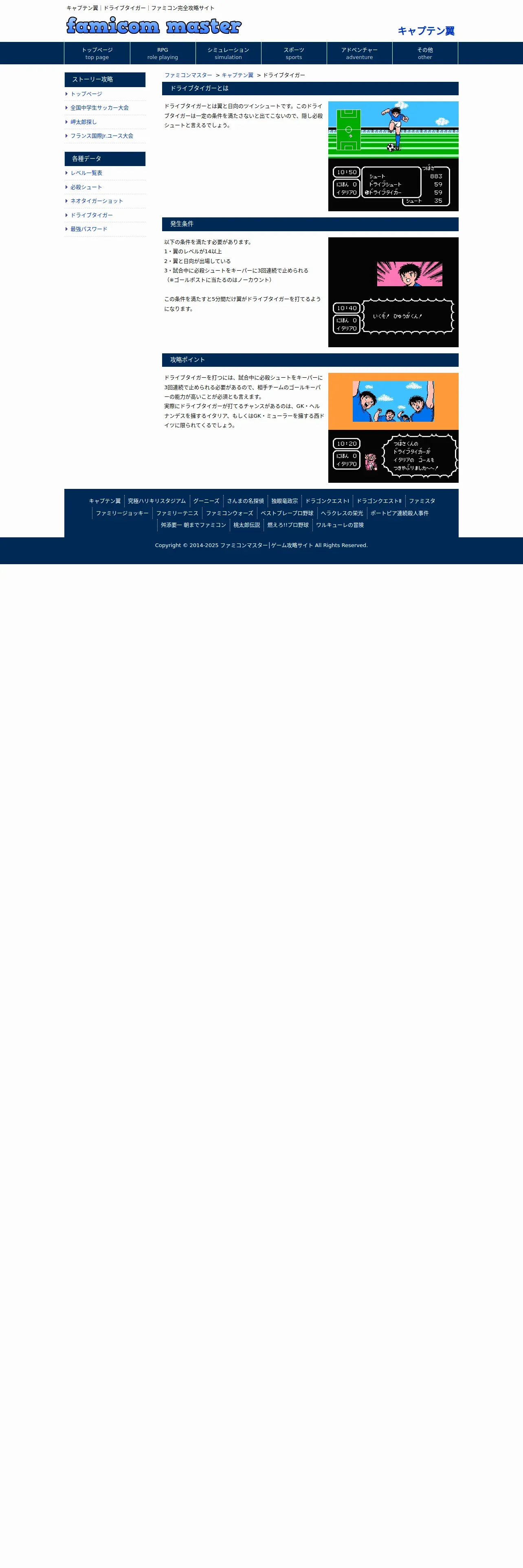 https://famicom.tokyo:443/captain-tsubasa/drive-tiger.html