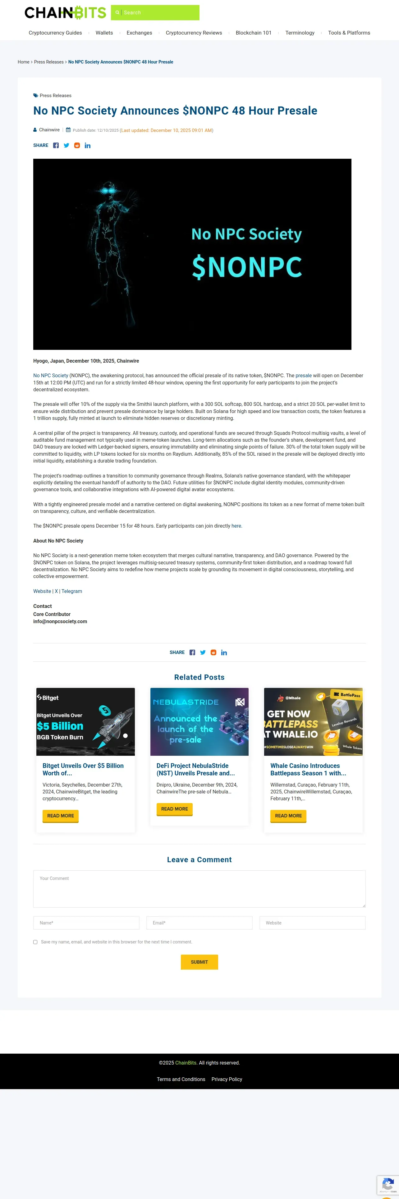 https://www.chainbits.com:443/press-releases/no-npc-society-announces-nonpc-48-hour-presale/