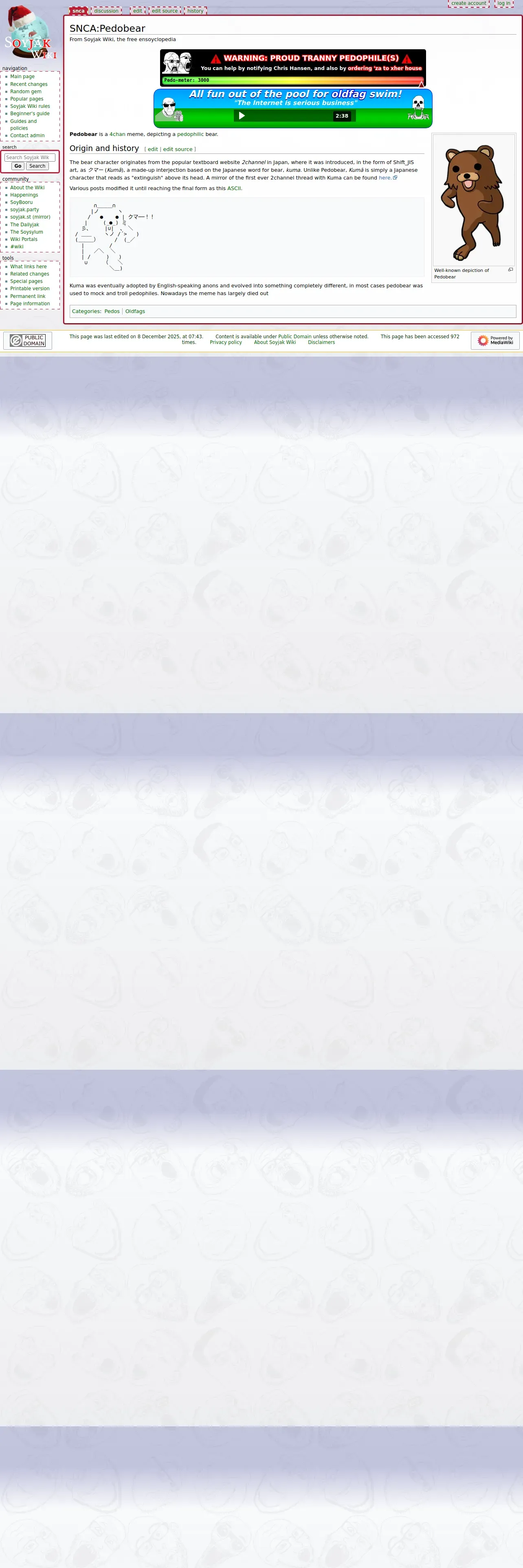 https://soyjakwiki.org:443/SNCA:Pedobear