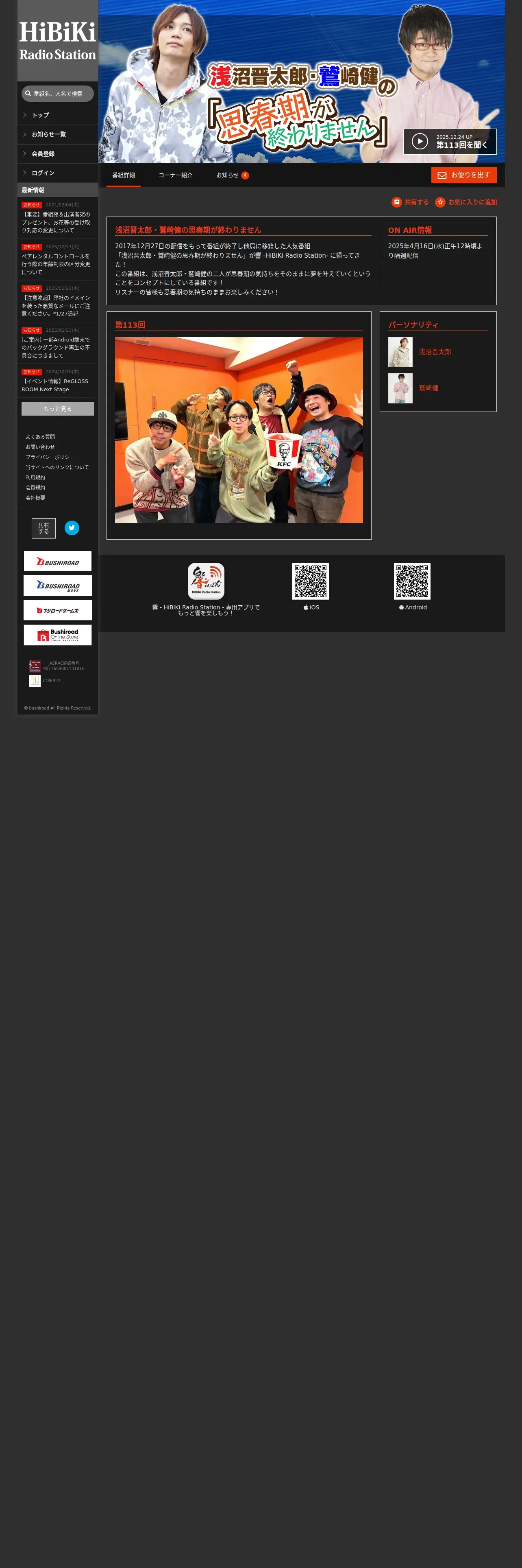 https://hibiki-radio.jp:443/description/shisyunki/detail