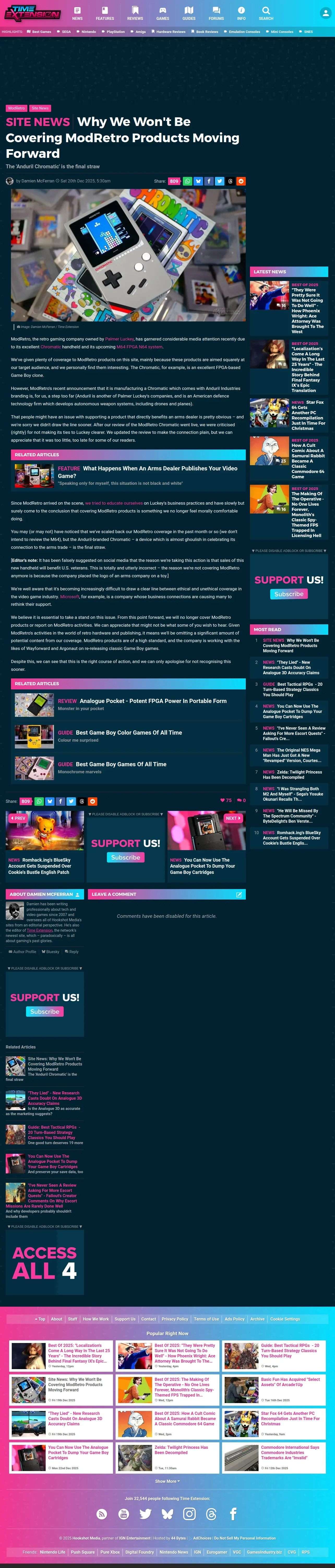 https://www.timeextension.com:443/news/2025/12/site-news-why-we-wont-be-covering-modretro-products-moving-forward