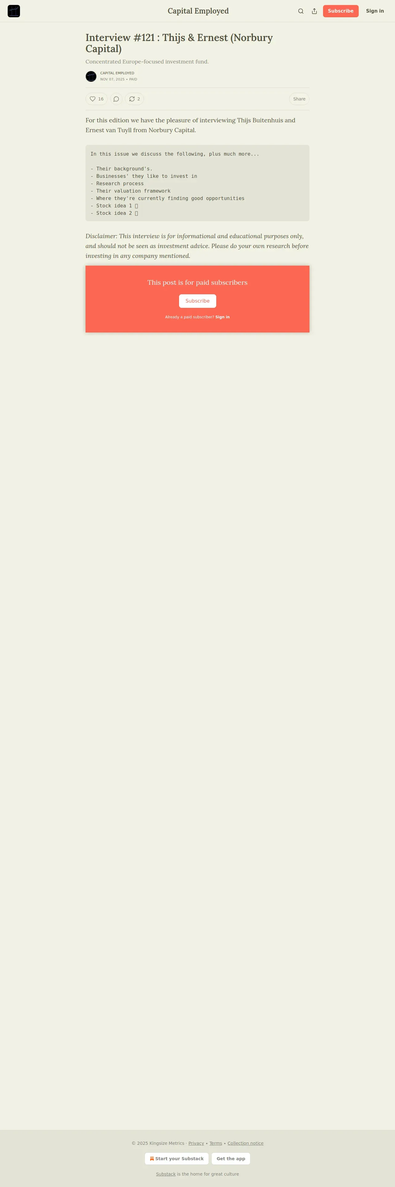 https://www.capitalemployed.com:443/p/interview-121-thijs-and-ernest-norbury