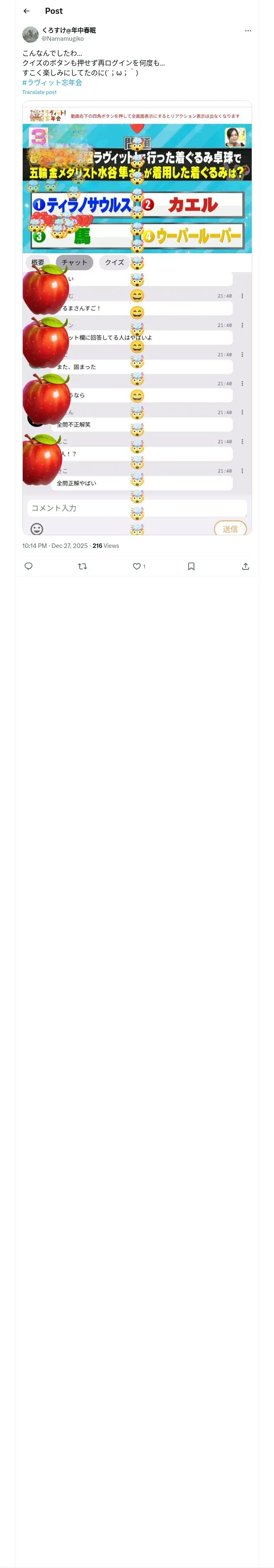 https://x.com:443/Namamugiko/status/2004903729066357177