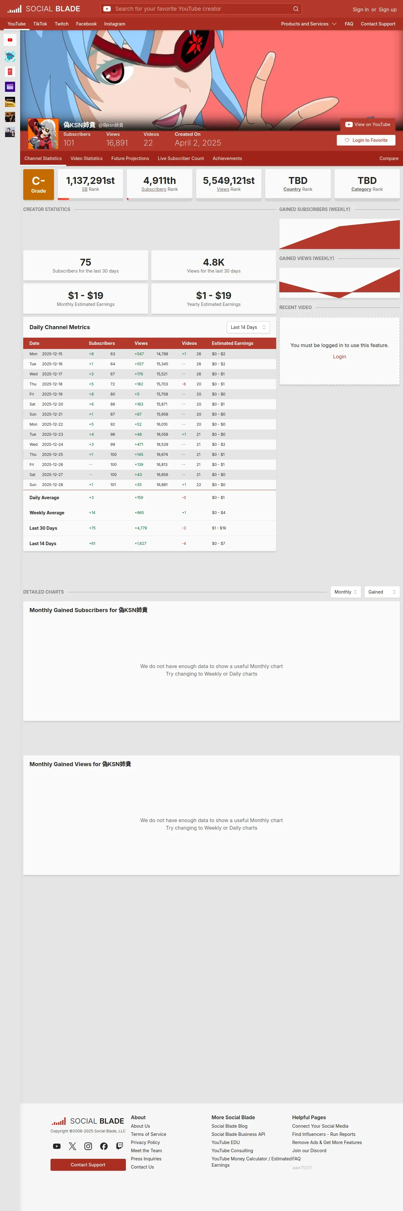 https://socialblade.com:443/youtube/channel/UCrvtzlEEXN-s7uAddp-AglQ