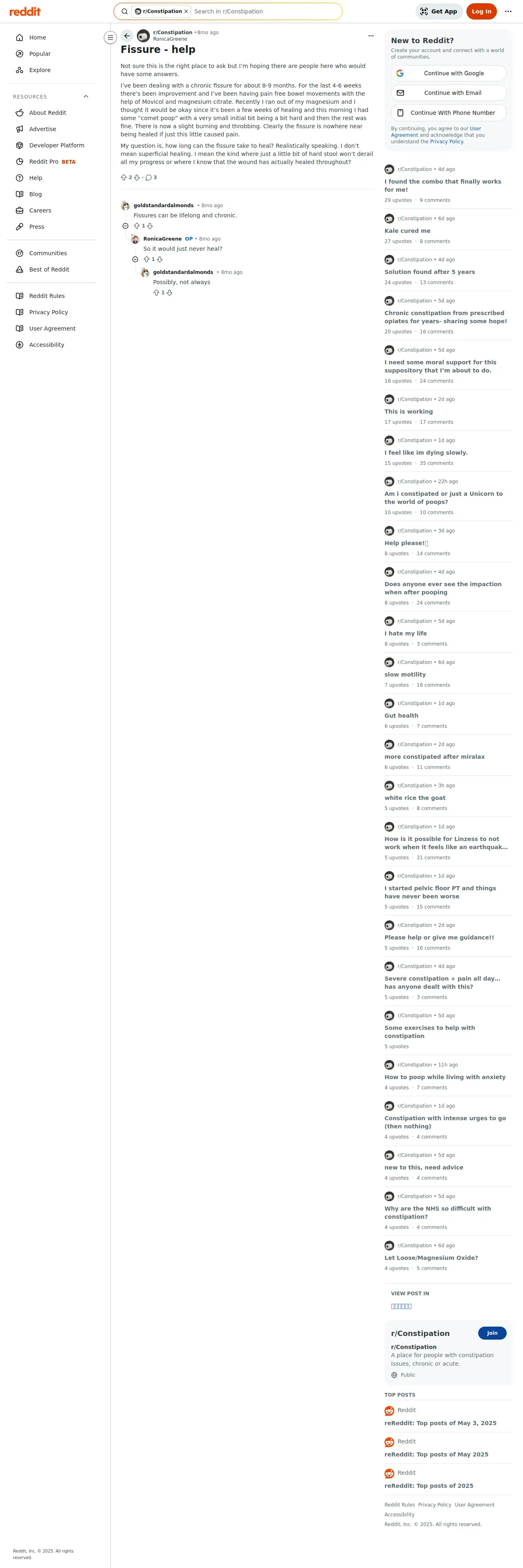 https://www.reddit.com:443/r/Constipation/comments/1kdo8jn/fissure_help/
