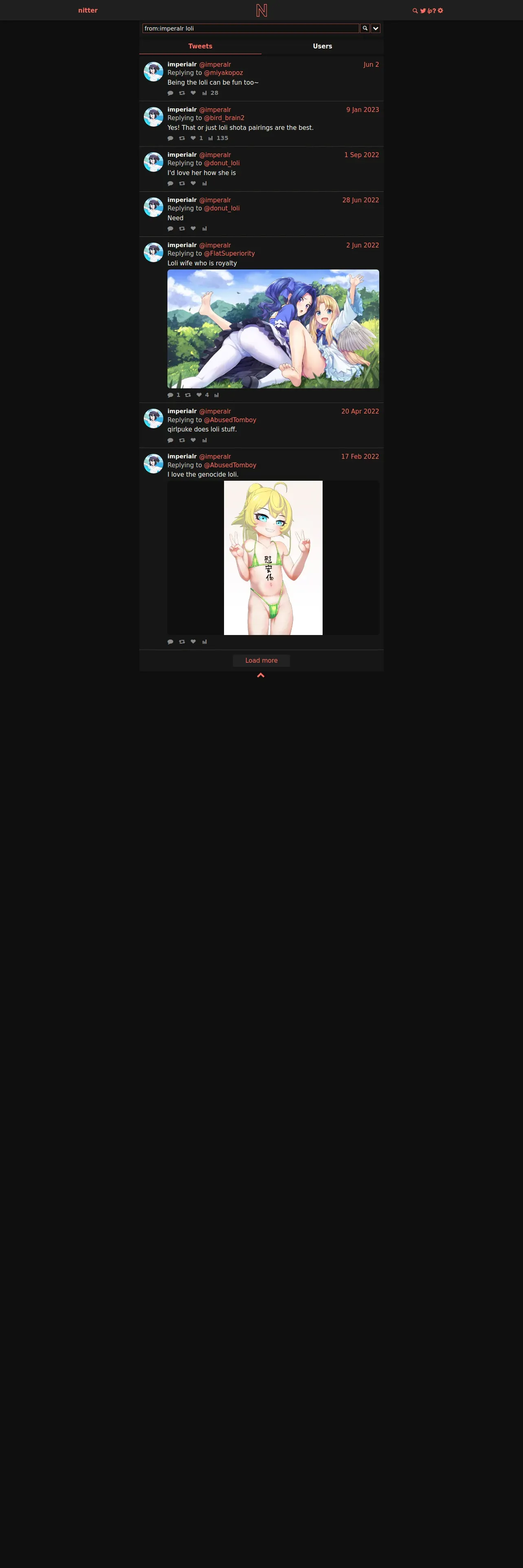 取得元URL: https://nitter.net:443/search?f=tweets&q=from%3Aimperalr+loli