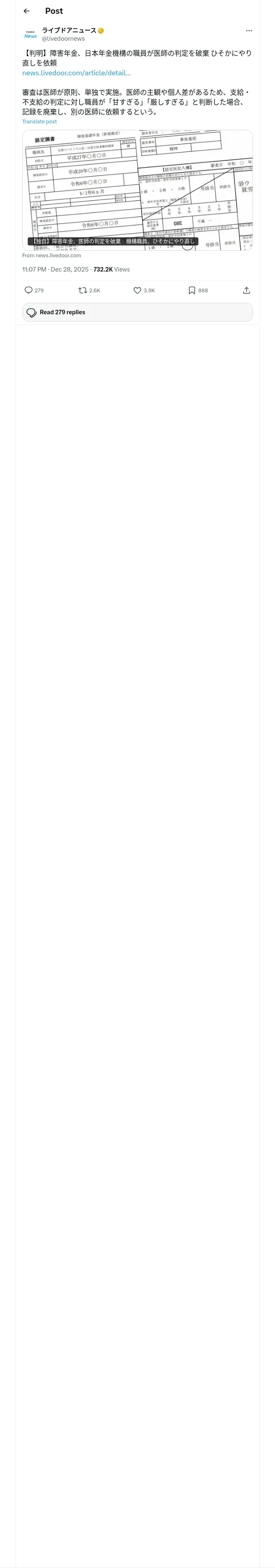 https://x.com:443/livedoornews/status/2005279324191285308