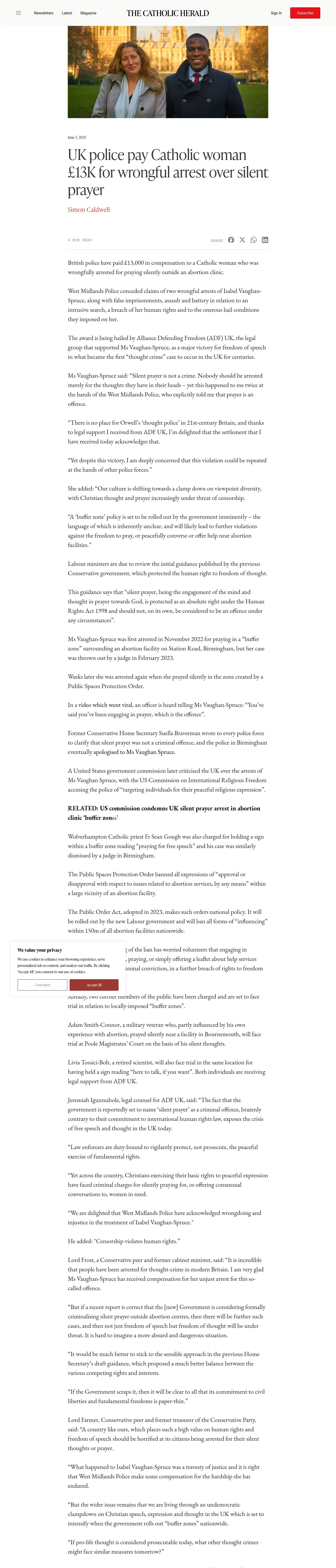 取得元URL: https://thecatholicherald.com:443/article/uk-police-pay-catholic-woman-13k-for-wrongful-arrest-over-silent-prayer