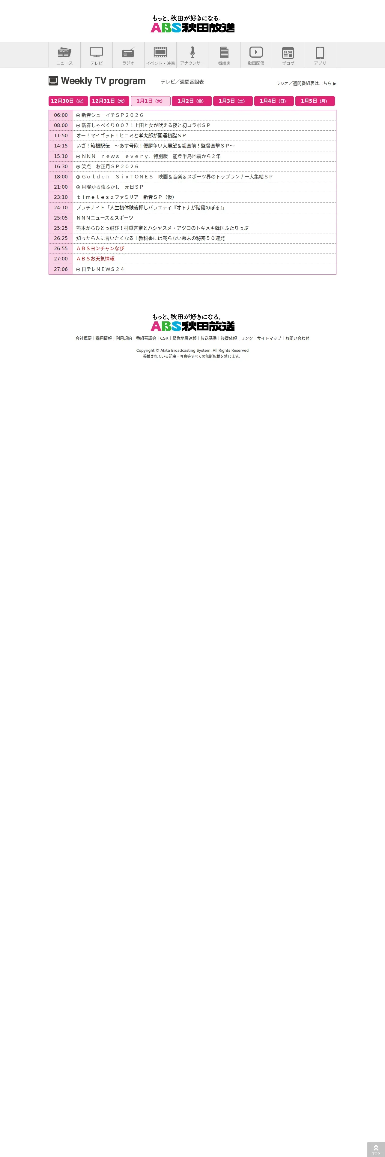 https://www.akita-abs.co.jp:443/weeklyprogram/?pg=tv&pgdate=20260101