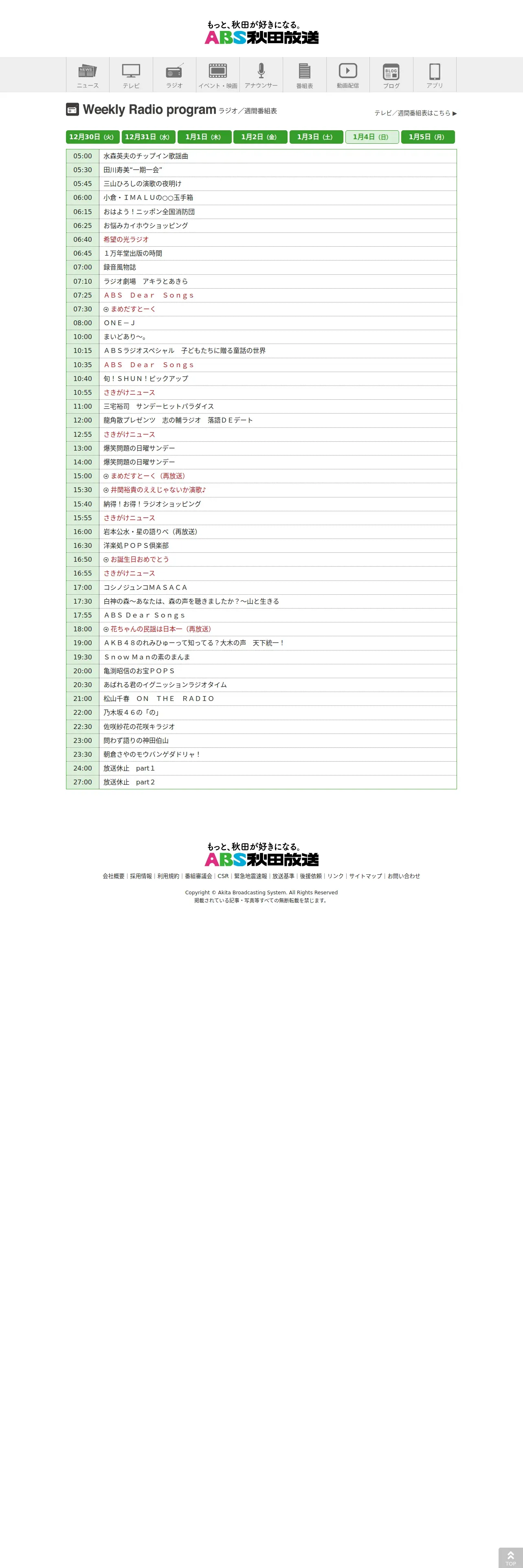 https://www.akita-abs.co.jp:443/weeklyprogram/?pg=radio&pgdate=20260104