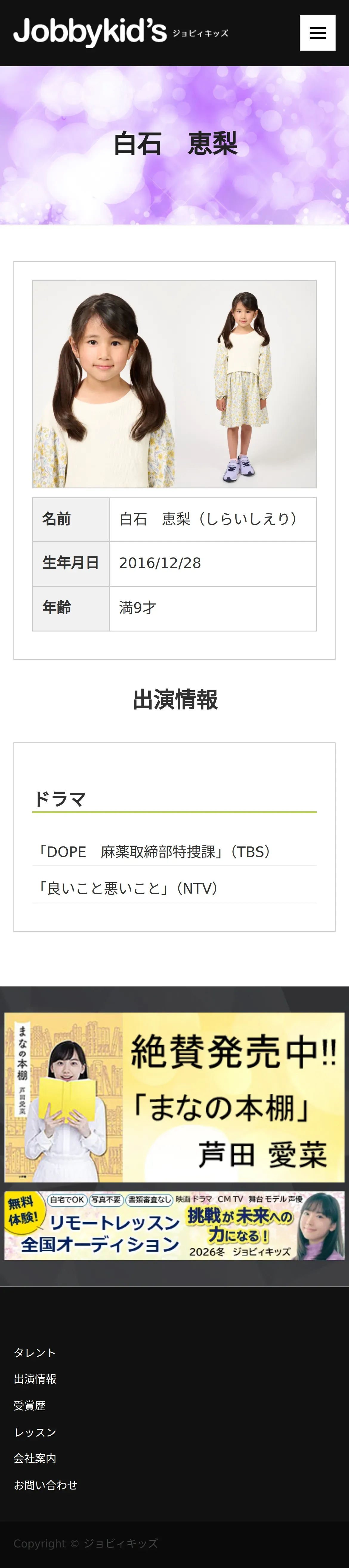 https://www.jobbykids.jp:443/talent/%E7%99%BD%E7%9F%B3%E6%81%B5%E6%A2%A8/