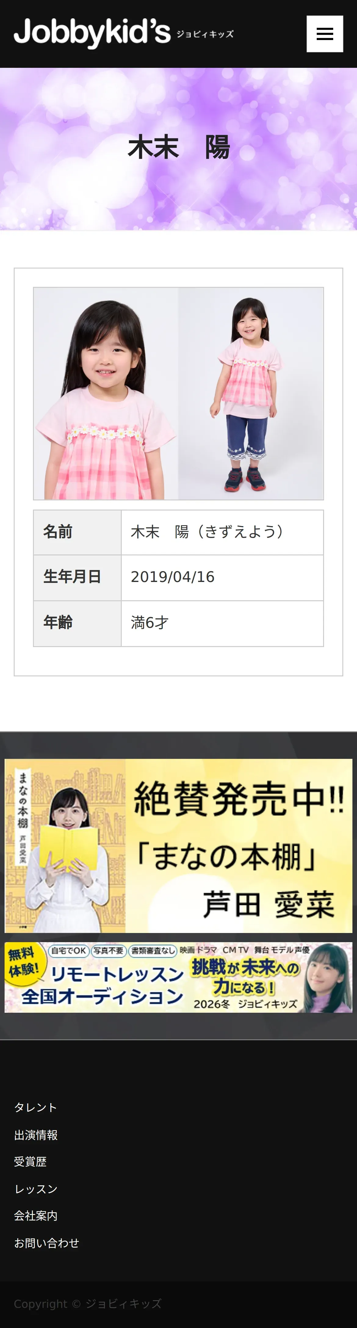 https://www.jobbykids.jp:443/talent/%E6%9C%A8%E6%9C%AB%E9%99%BD/