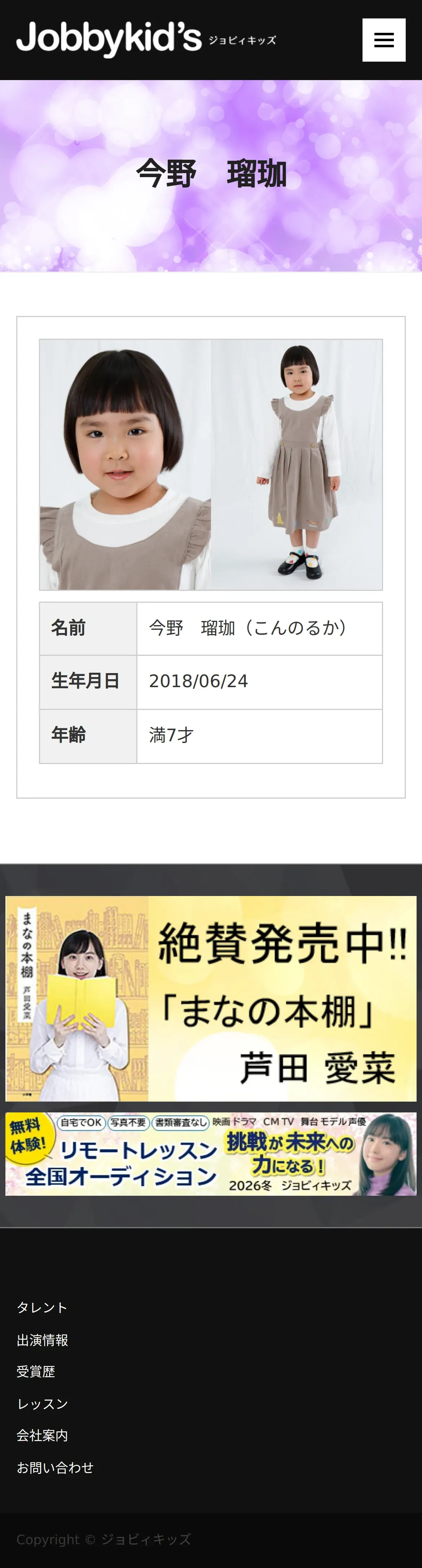 https://www.jobbykids.jp:443/talent/%E4%BB%8A%E9%87%8E%E7%91%A0%E7%8F%88/