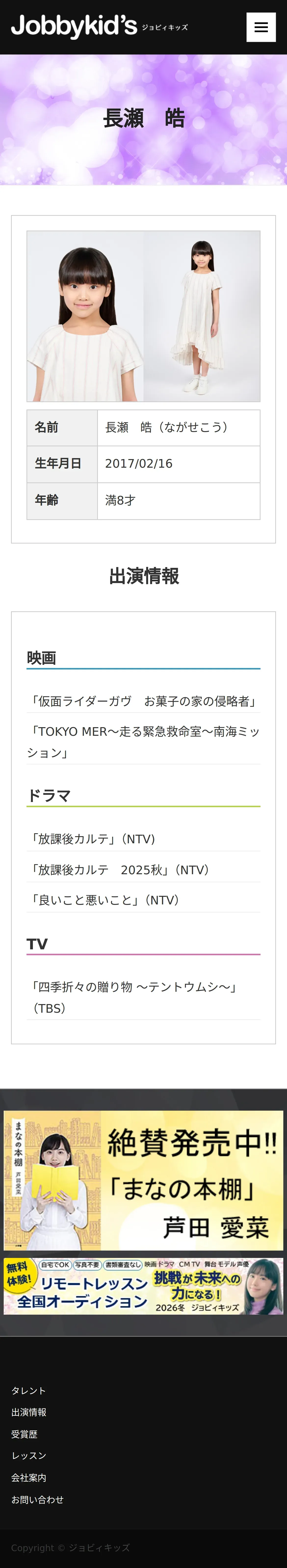 https://www.jobbykids.jp:443/talent/%E9%95%B7%E7%80%AC%E7%9A%93/