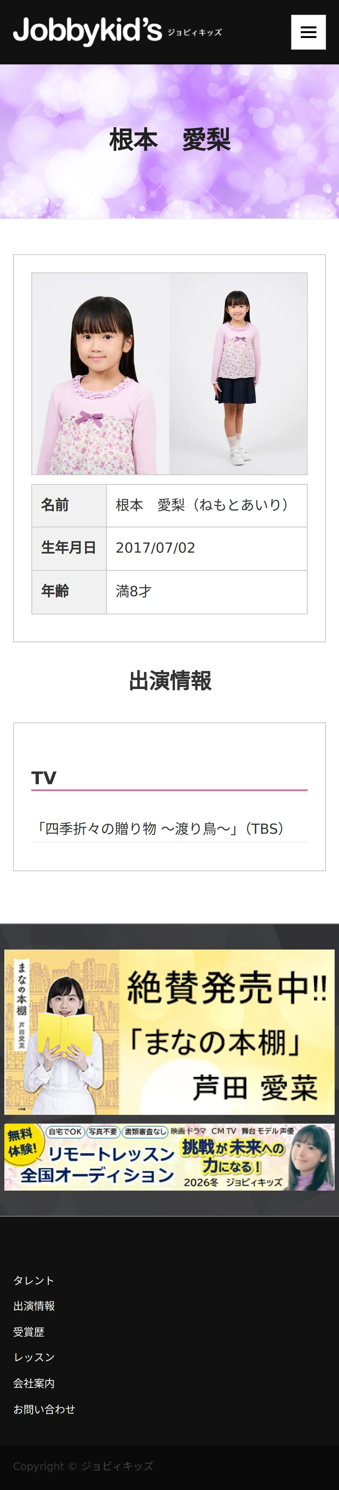 https://www.jobbykids.jp:443/talent/%E6%A0%B9%E6%9C%AC%E6%84%9B%E6%A2%A8/