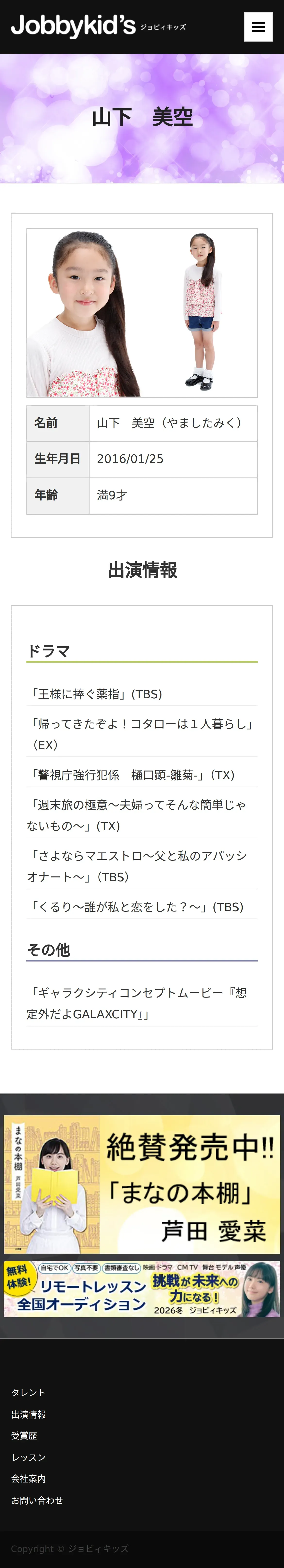 https://www.jobbykids.jp:443/talent/%E5%B1%B1%E4%B8%8B%E7%BE%8E%E7%A9%BA/